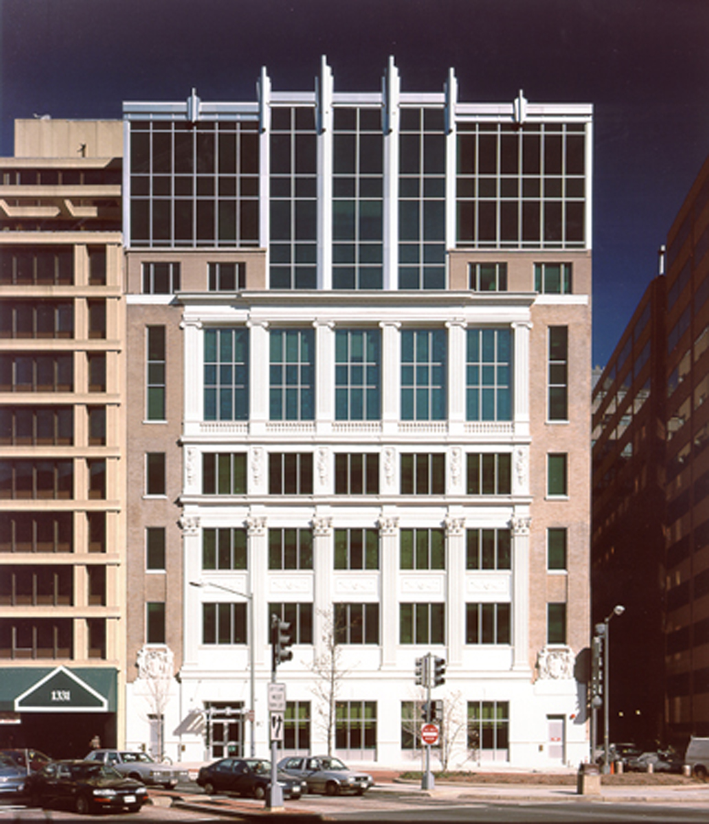 A key challenge in the creative process was how to integrate the new addition with the historic character of the structure, especially given its prominent location directly across from the iconic New York Avenue Presbyterian Church, where Abraham Lincoln once attended services. The new facade design thoughtfully preserved and echoed key elements from the original architect’s award-winning Herald design, ensuring the building retained its historic charm while accommodating modern needs.