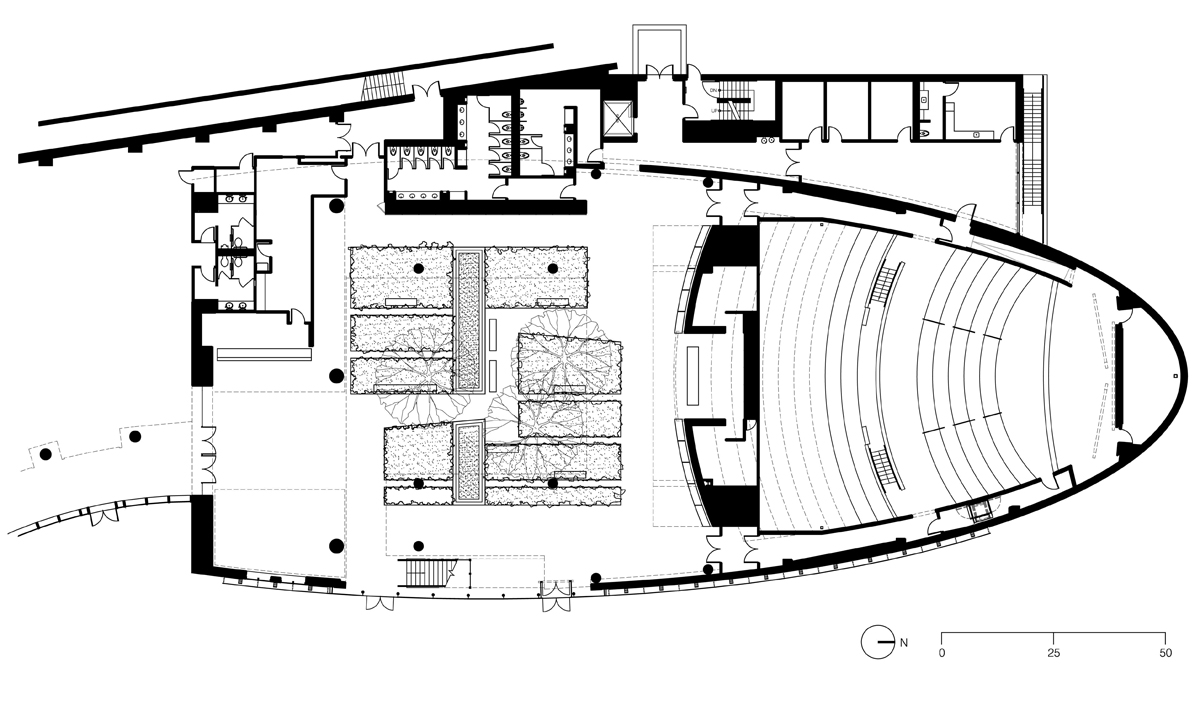A defining feature of the project is the Garden Atrium, a light-filled indoor landscape conceived as an informal gathering space and social hub. Acting as a counterpoint to the formality of the Lecture Hall, the Atrium provides a restorative environment that encourages informal interaction, reflection, and connection. Its role mirrors that of a civic commons—an inviting space that serves everyday activity as well as special gatherings.