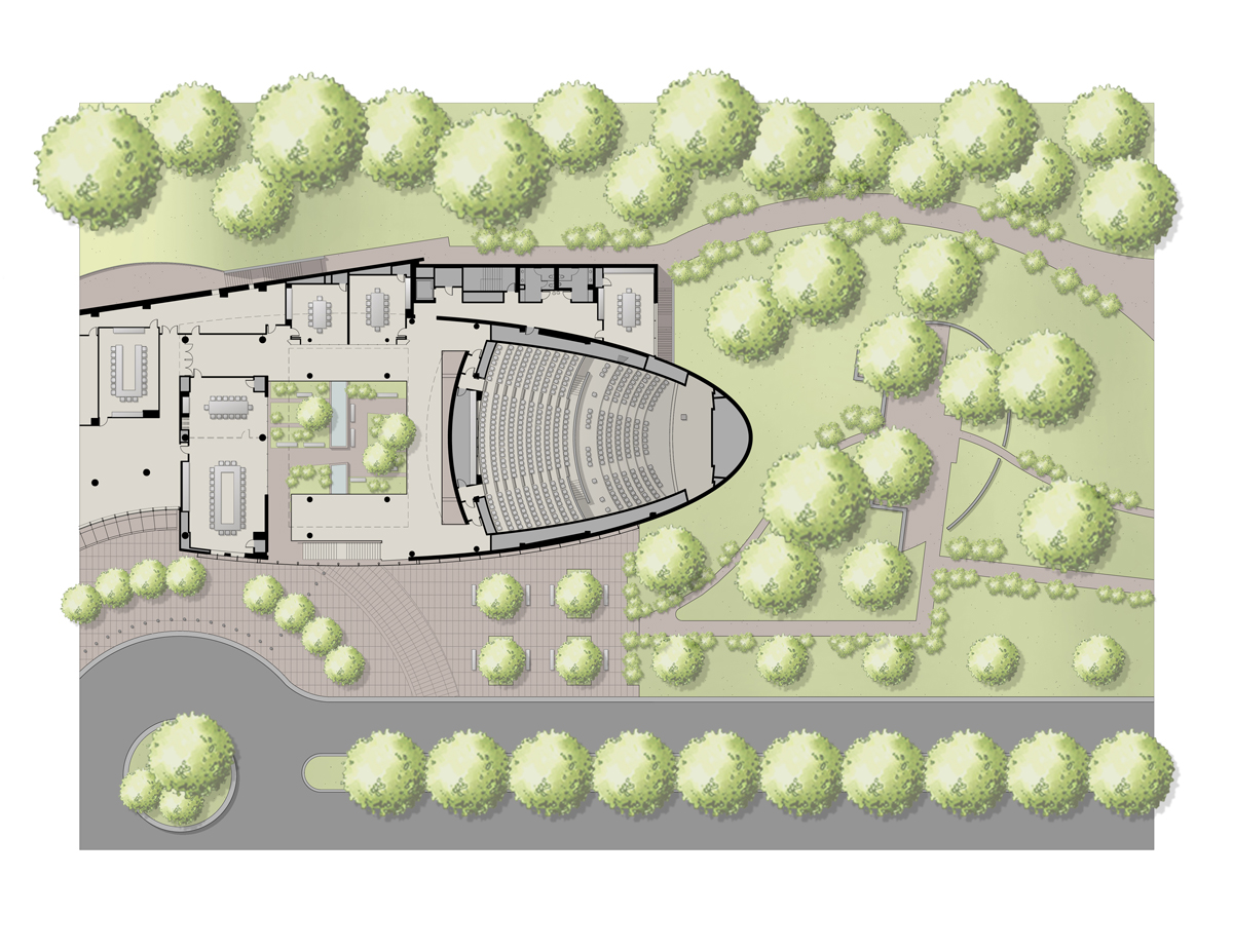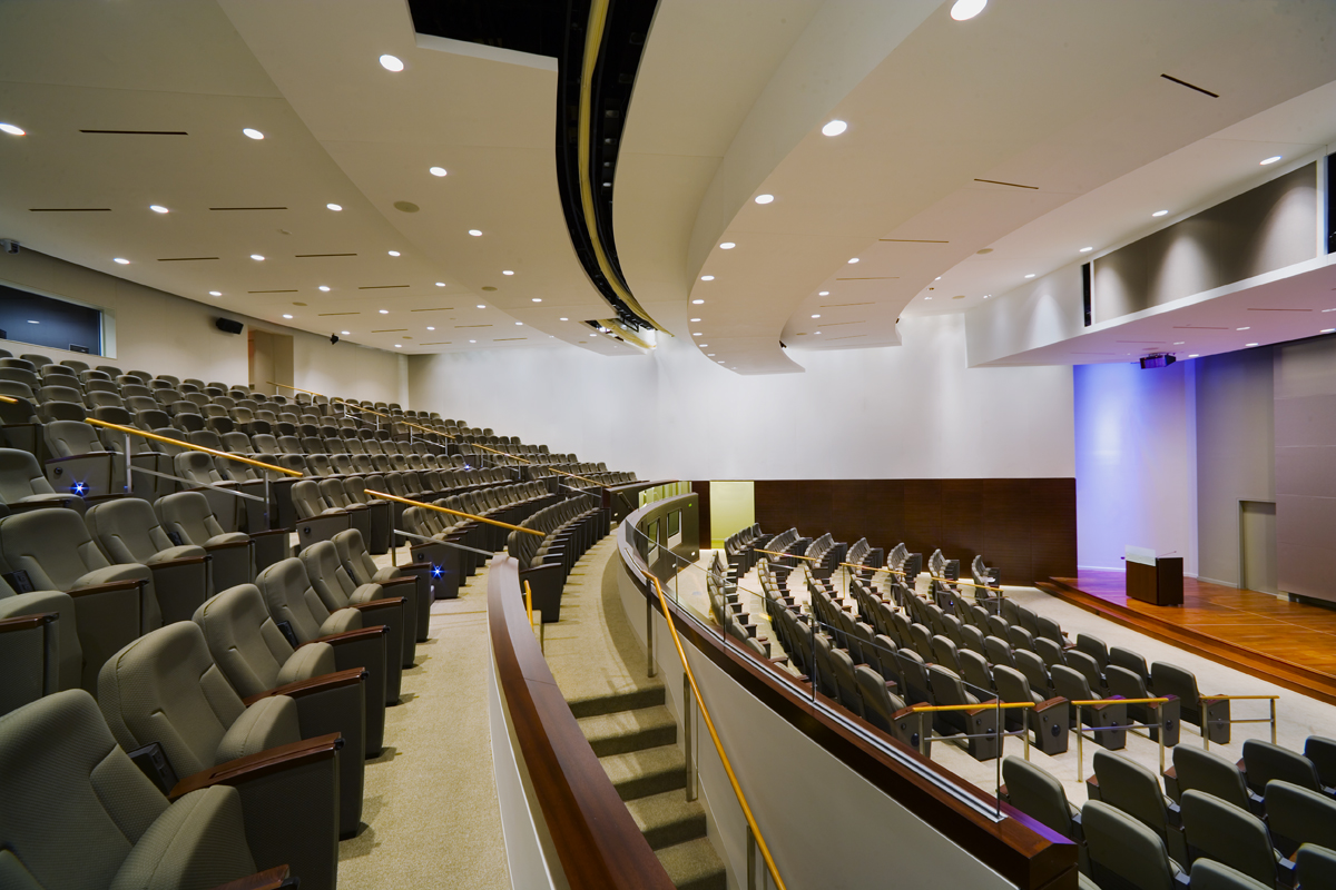 The 32,000-square-foot expansion was conceived to provide a purpose-built, 400-seat lecture hall capable of hosting major assemblies previously held off-site. The new building was envisioned not simply as an internal amenity, but as a cultural and educational resource—a venue where large groups could gather for presentations, training, community partnerships, and organizational events.