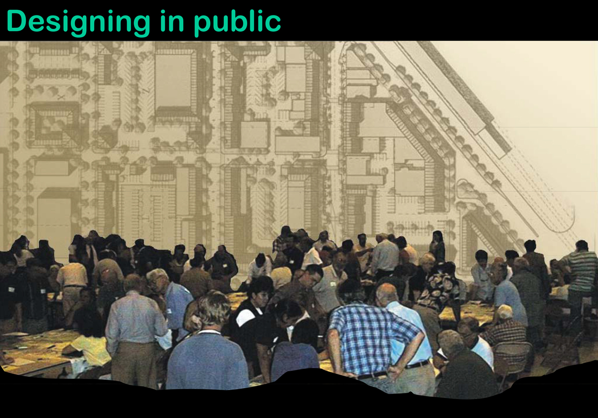 Using charrettes, public meetings, and on-the-ground analysis, Jessen and the consultant team built the initial framework that informed the mixed-use nodes, street character, building forms, and public realm standards that ultimately defined the Code. The Dover-Kohl project documentation notes that over 700 community members participated in these Phase 1 charrettes, producing the illustrations and strategies that formed the basis of the Revitalization District Form-Based Code .