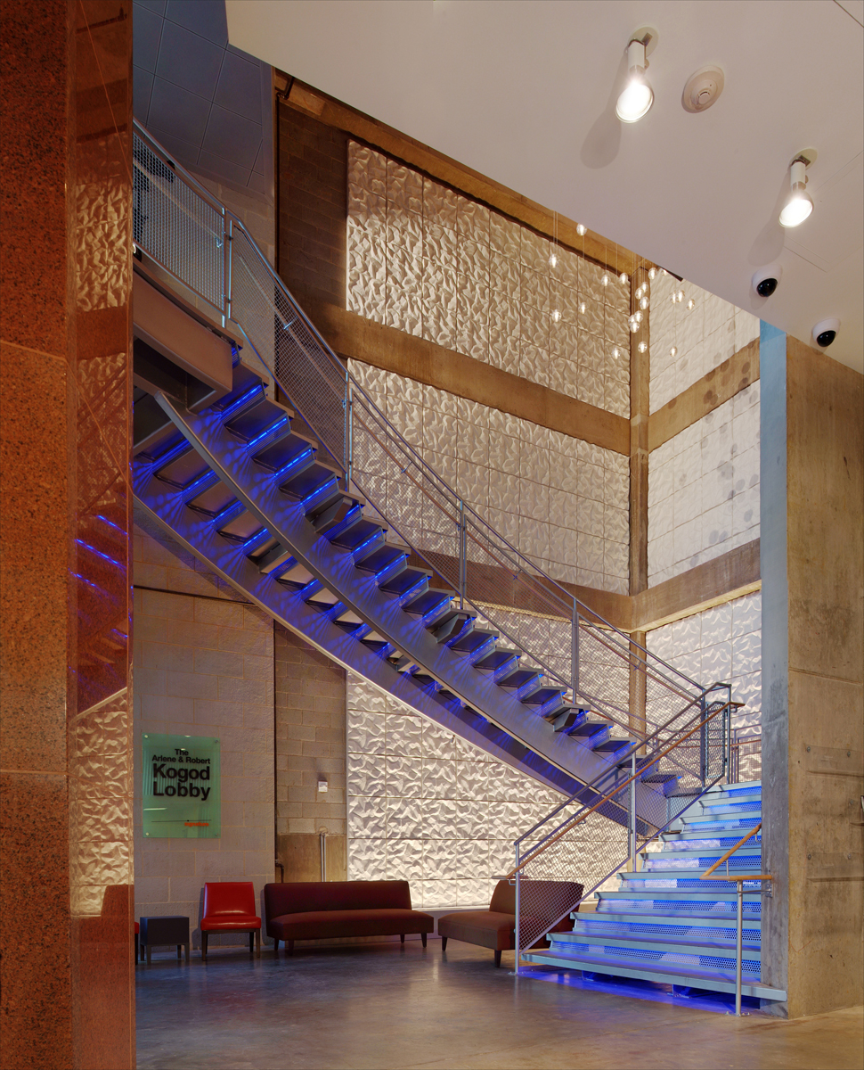 Behind the scenes, the facility provides expanded rehearsal areas, production shops, artist support spaces, and enhanced amenities for staff and performers—critical infrastructure for a company committed to producing ambitious musical theater. Public spaces were designed to heighten the patron experience, from the lobby and circulation spaces to the material palette that captures Signature’s edgy yet polished identity.